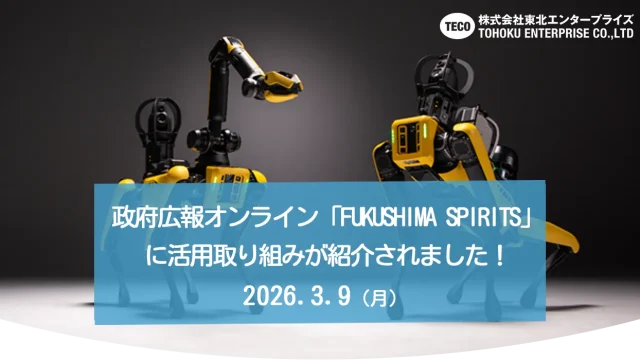 政府広報オンライン「FUKUSHIMA SPIRITS」で 四足歩行ロボット「Spot」の活用が紹介されました! 政府広報オンラインの特集「FUKUSHIMA SPIRITS」にて、廃炉研究の現場で活用されるロボット技術について紹介したイン...